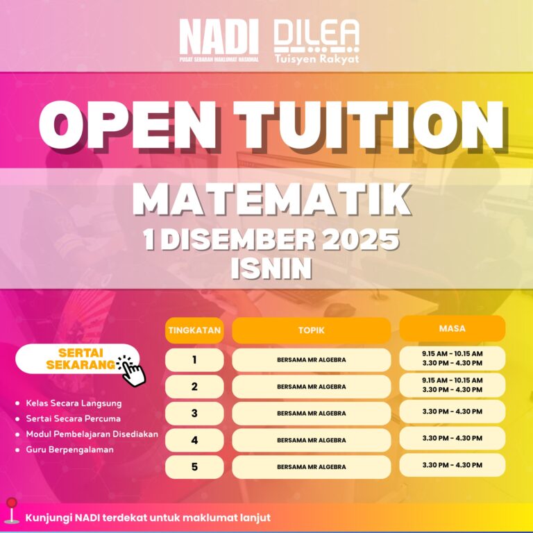 Aktiviti NADI Sepanjang Bulan Disember 2025 Jom sertai pelbagai program menarik anjuran NADI 4U sepanjang bulan Disember ini! Kelas ICT & e-Learning Aktiviti STEM & IoT yang menyeronokkan Bengkel Soft Skills & Keusahawanan Program Kesihatan & Komuniti Tingkatkan kemahiran, tambah […]
