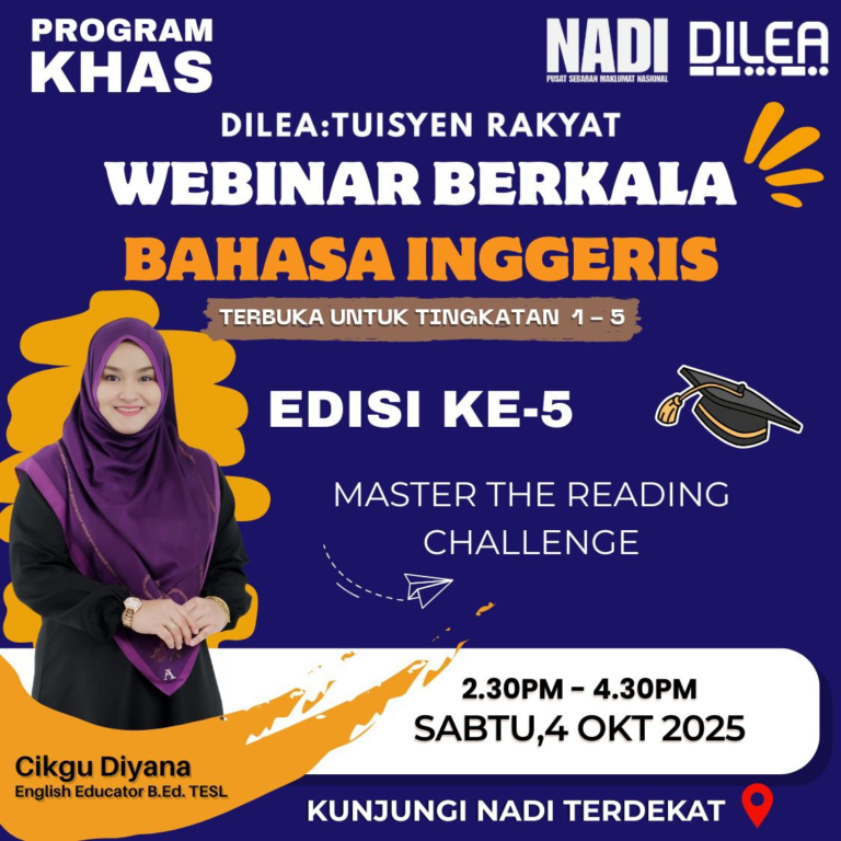 Hello pelajar Tingkatan 1 – 5! ๐ฌNak mantapkan penguasaan Bahasa Inggeris sebelum UASA? โจJom join Webinar Berkala Bahasa Inggeris Edisi ke-4 khas untuk anda! ๐๏ธ Tarikh: 16 Ogos 2025 (Sabtu)๐ Masa: 2.30 PM โ 4.30 PM๐ Tempat: NADI berhampiran anda […]