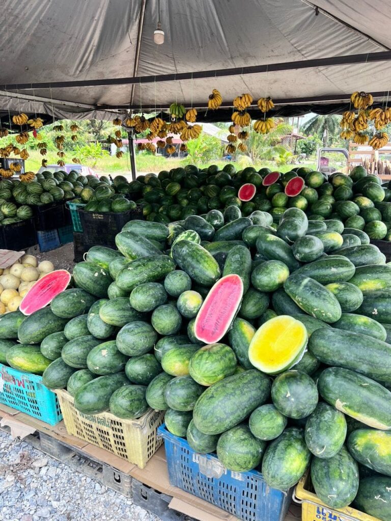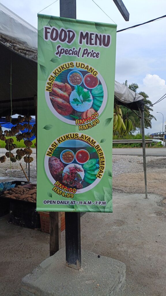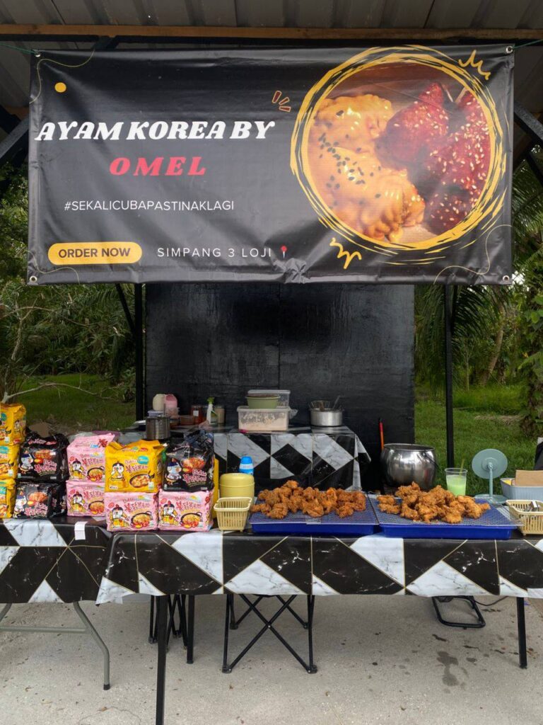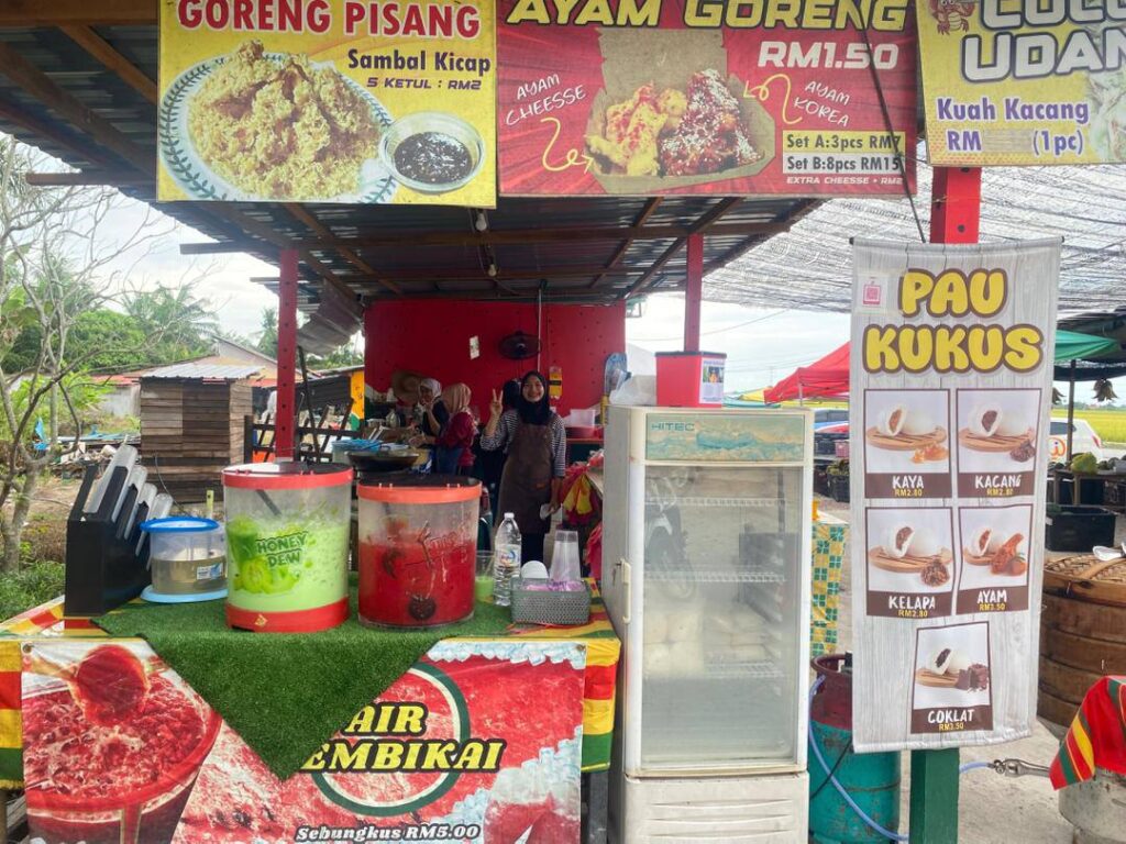 Menjual buah-buahan seperti tembikai, nenas, ubi, jambu, mangga, pelbagai jenis pisang dan lain-lain lagi. Juga menjual makanan snek goreng seperti ayam gunting, sosej, pisang goreng dan air buah balang yang segar. Gerai disini juga turut menjual nasi ayam kukus berempah dan pelbagai menu makana seperti lontong dan nasi ayam. Tempahan awal juga boleh dibuat melalui aplikasi Whatsapp. Terkini menu baru di gerai ayam korea cheese dan ramen yang menjadi kegemaran pengunjung remaja. Lokasi di Simpang 3 Loji Sungai Besar 2.3km dari NADI Tebuk Haji Yusuf.