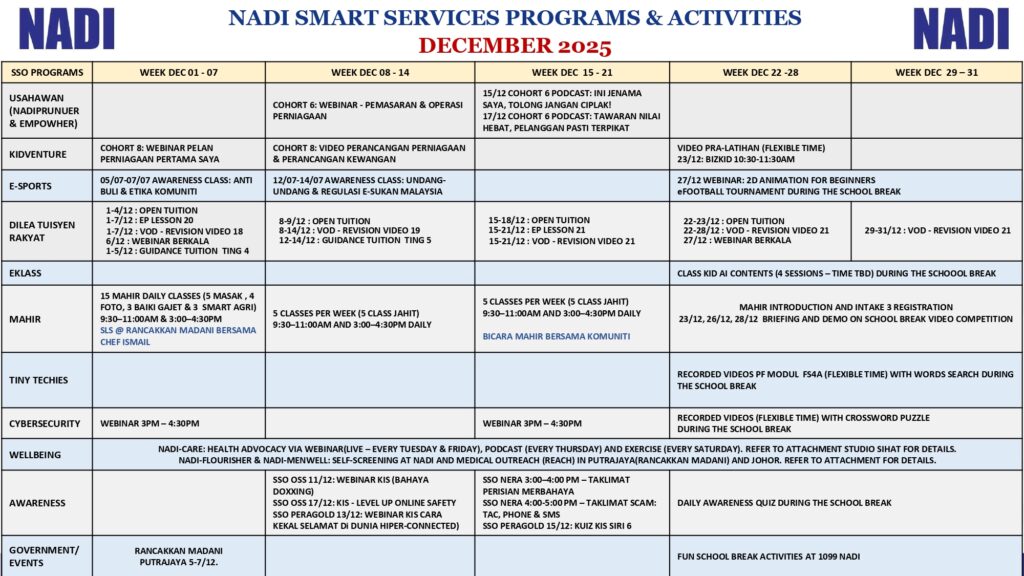 Aktiviti NADI Sepanjang Bulan Disember 2025